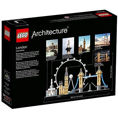 Details: Celebrate the architectural diversity of London with this detailed LEGO® brick model kit. The LEGO® Architecture Skyline Collection offers building kit models suitable for display in the home and office, and has been developed for all with an interest in travel, architectural culture, history and design. Each architecture set is scaled to give an accurate representation of the comparative size of each structure, with true-to-life color depiction. This iconic London building set depicts the National Gallery, Nelson’s Column, London Eye, Big Ben (the Elizabeth Tower) and Tower Bridge, and is finished with a decorative “London” nameplate, making it a great gift for adults and kids alike.