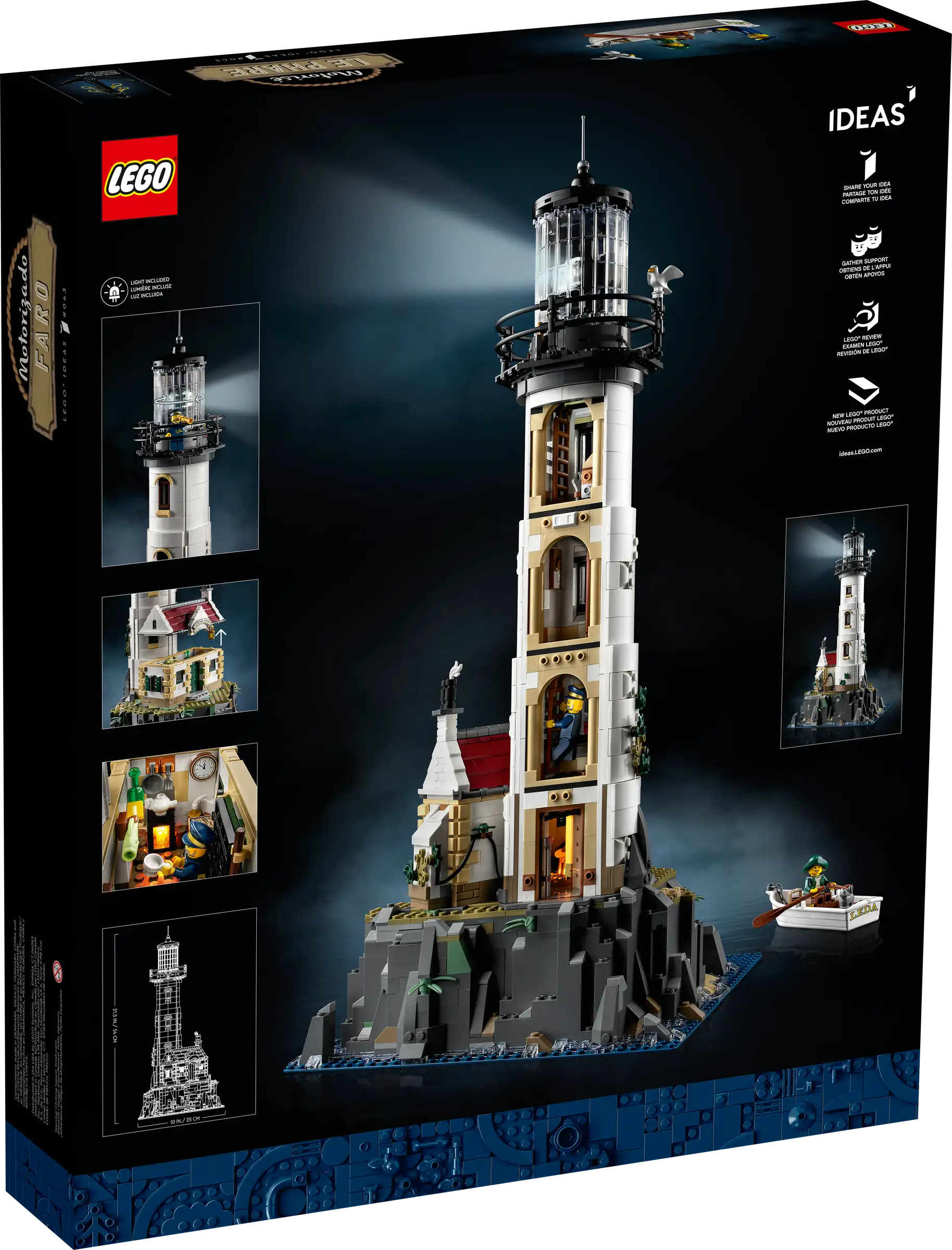 - Motorized Lighthouse (21335) model for display – Shine a light on your creativity with this highly detailed, buildable lighthouse on rocks, with a pier and steps, cave and lighthouse keeper’s cottage