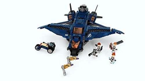Details: Team up with the Avengers and fly into conflict against the Chitauri in the LEGO® Marvel Avengers 76126 Avengers Ultimate Quinjet. This awesome Marvel model features an opening minifigure cockpit, stud shooters, adjustable wings, spinning rotors, opening passenger compartment and an opening rear compartment with a fold-out 6-stud rapid shooter and stud-shooting trike. This cool construction toy for kids includes 6 minifigures—including Black Widow, Hawkeye, Rocket and Thor, all with new-for-March-2019 Avengers team suit decoration—and cool weapons for imaginative play and to recreate thrilling scenes from the Marvel Avengers movies.